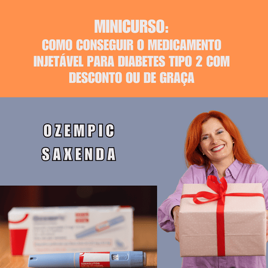 - E também irá ganhar um MINICURSO de como adquirir seu medicamento para diabetes tipo 2 com DESCONTO ou GRATUITAMENTE.